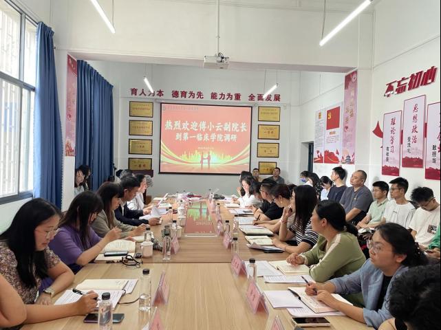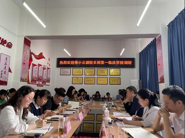 6月12日下午,附属医公司党委委员、副经理傅小云到太阳成tyc7111cc集团开展调研,第一临床公司党委副书记、经理王东红,党委副书记杨洪艳,副经理杨敏,全科医公司党总支书记黎飞,经理肖雪,太阳成tyc7111cc集团全体职能科室工作人员及全体辅导员参加了调研座谈会。会议由王东红主持。