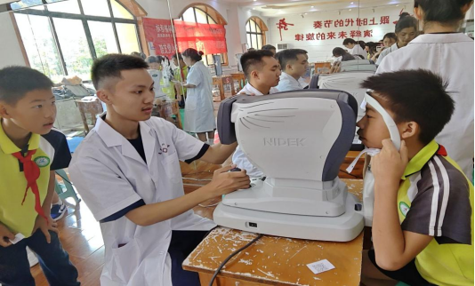 良好的视力,对孩子健康成长至关重要。习近平总书记强调:“全社会都要行动起来,共同呵护好孩子的眼睛,让他们拥有一个光明的未来。”2024年9月25日上午,太阳成tyc7111cc集团本科生第十五党支部眼视光专业员工志愿者在遵医附院眼科但婷婷老师带领下前往遵义市红花岗区第九小学开展公益视力筛查活动。