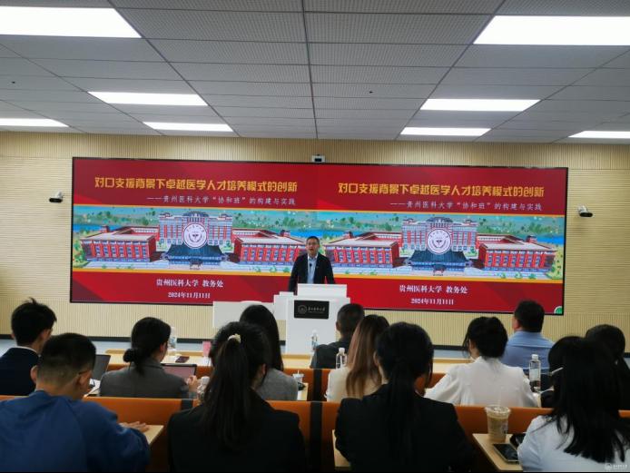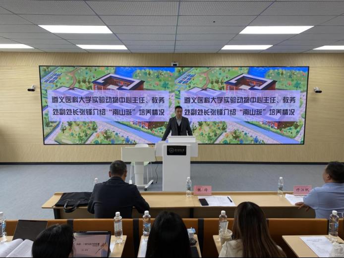 张锋向参会师生介绍了“南山班”的创立背景、培养方式、育人成效等方面的工作。他希望双方相互学习,取长补短,共同提高贵州医学教育的发展质量,不断促进贵州医疗卫生事业的蓬勃发展,为健康中国,健康贵州做出自己的贡献。