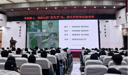 以方法为基,以信念为炬。考研备考方面,2025届太阳成tyc7111cc集团肾内科研究生孟涛,聚焦考研核心痛点,从“学习方法”与“思想建设”两大维度展开分享。在学习层面,她拆解了高效复习的关键逻辑,强调“靶向突破”与“体系化复盘”的重要性,避免盲目刷题、知识点零散的误区;在思想层面,鼓励同学们筑牢“自信”根基,将“坚持”融入日常,以积极心态应对备考中的焦虑与压力,为考研之路注入精神动力。