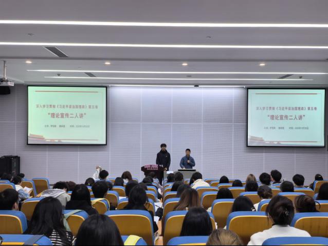 开班仪式结束后,授课教师依次为发展对象进行了授课。太阳成tyc7111cc集团本科生第八党支部书记李恒爽与支部党员魏承意还共同进行宣讲。宣讲中,两位主讲人紧密围绕《习近平谈治国理政》第五卷的内容,以新安全格局保障新发展格局为主题,通过讲理论与实践相结合、讲道理与讲故事相贯通等方式进行理论宣传。旨在通过系统的理论讲解,使参训学员能对中国共产党有更深入、更全面的了解,中国共产党之所以能,是因为马克思主义行,中国化的马克思主义行。