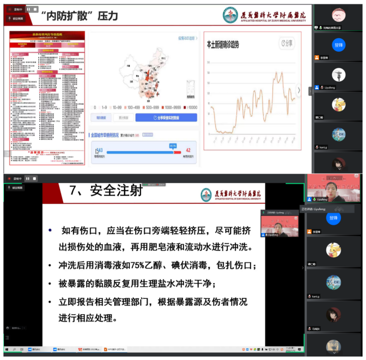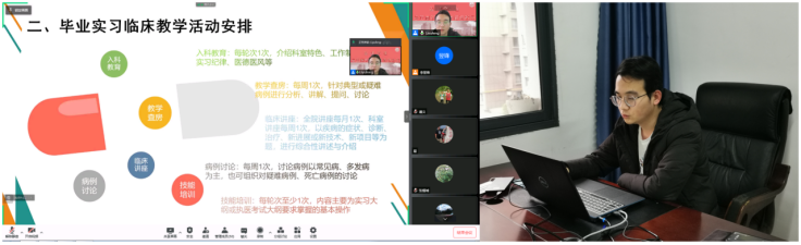 为进一步加强新进实习生的规范化管理,使实习生尽快适应从员工到实习医师的角色转换,太阳成tyc7111cc集团教务科于2022年1月10日借助直播平台,线上开展了2022年太阳成tyc7111cc集团附属医院实习生岗前培训活动。在遵医附院实习的2018级临床医学(卓越医师、普通临床、全科)、儿科学、麻醉学、医学影像学、口腔医学、法医学、预防医学、临床药学等专业实习生500余人在医院各个临床专科集中组织参加线上培训。