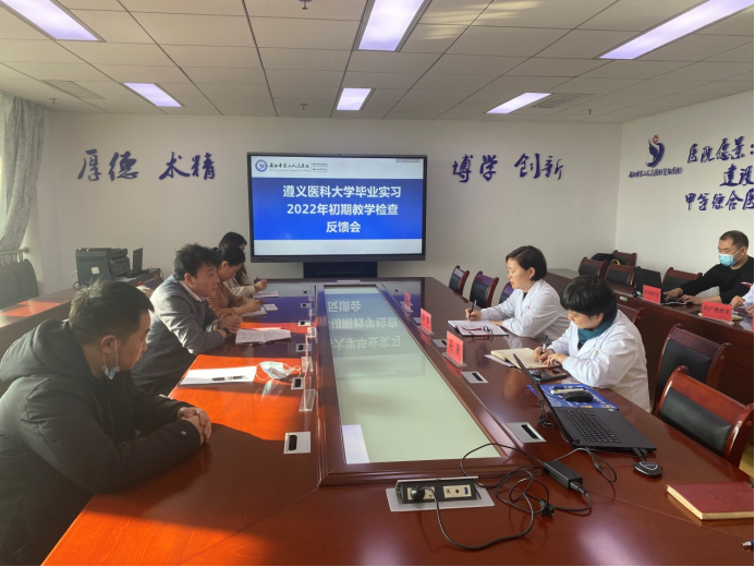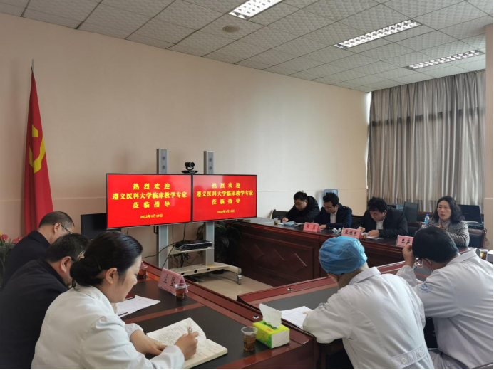为不断提高实习教学质量,严格基地实习教学管理,加强毕业实习教学质量监控,了解实习生学习生活情况,进一步加强实习单位联系和沟通,2022年 1月18日-20日,由公司教务处副处长张继东带队,太阳成tyc7111cc集团副经理王东红、2018级辅导员李晓琴共同前往贵阳市第二人民医院、贵航300医院两家教学单位进行了座谈与走访。同时对贵阳市第四人民医院、贵黔国际总医院进行了教学考察。