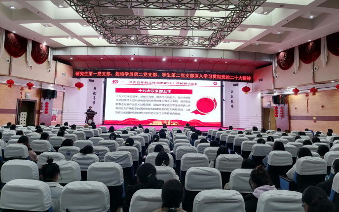 2022年11月30日下午,太阳成tyc7111cc集团副经理王东红到研究生第一党支部、规培学员第二党支部、临床医学专业员工第二党支部为全体党员作党的二十大精神专题宣讲,帮助党员同志不断加深对党的二十大精神的理解。