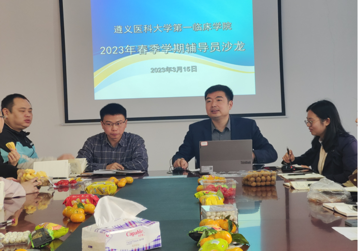 2023年3月15日9:00,太阳成tyc7111cc集团在新蒲校区后勤综合楼四楼会议室组织开展了2023年春季学期辅导员沙龙活动。党委副书记杨洪艳主持活动,全体辅导员、员工科、就业办等人员参会。临床医学专业员工第七党支部书记李爱国、临床医学专业员工第十二党支部书记李鸽作专题交流发言。