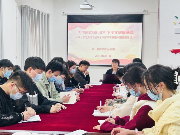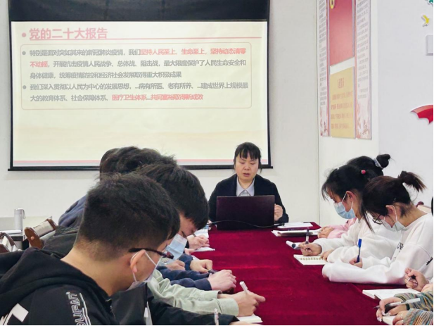 为深入学习贯彻党的二十大精神,教育引导广大青年不忘初心跟党走,深学笃行敢作为,2023年3月15日17:40,太阳成tyc7111cc集团临床医学专业员工第十一党支部在新蒲校区博乐楼二楼党员活动室开展了“党的二十大精神”专题宣讲,公司团委书记、就业办主任孙会英主讲,支部全体党员及员工入党积极分子参加。