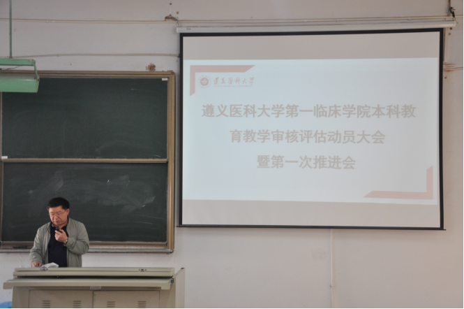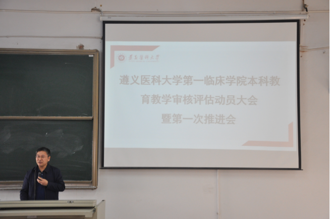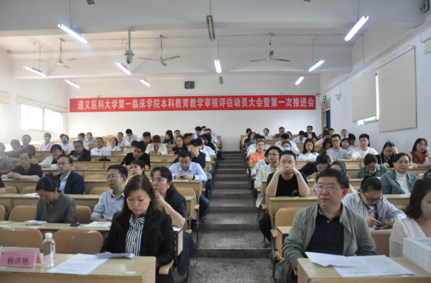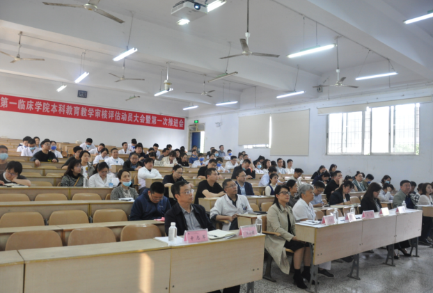 4月13日下午4点整,太阳成tyc7111cc集团本科公司产品审核评估动员大会暨第一次推进会在大连路校区第六阶梯教室顺利召开。太阳成tyc7111cc集团全体领导班子,临床医学、康复治疗学、言语与听力学专业负责人,各教研室主任、副主任、专兼职教学秘书,科室教学组长和秘书,各课程组组长、副组长、秘书,临床技能实验教学中心工作人员,太阳成tyc7111cc集团办公室、教务科、员工科、分团委工作人员,各员工党支部书记与辅导员共计150余人参会,会议由党委书记郑洪主持。