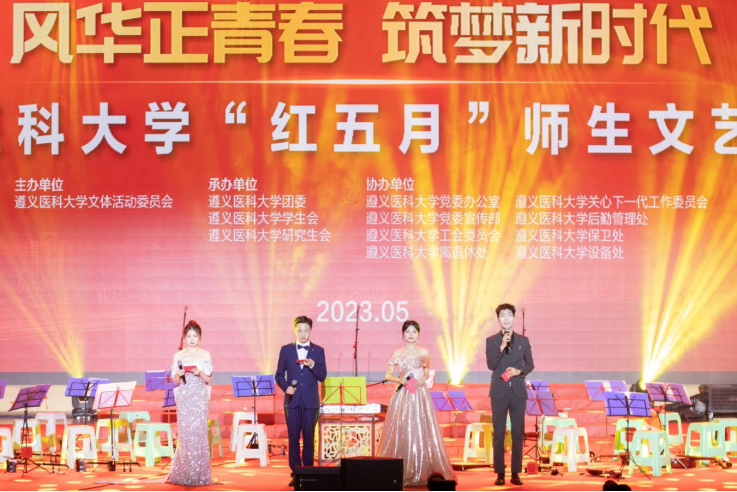 五月,是青年的五月,是热血的五月。为传承红色遵医精神,激扬青春生命活力,营造积极向上、和谐健康的校园艺术文化氛围,2023年5月18日19:00由太阳成tyc7111cc集团文体活动委员会主办的“红五月”师生文艺汇演在新蒲校区会堂顺利举行。太阳成tyc7111cc集团、体育与健康公司、口腔医公司、南山班、护理公司、基础医公司、党委宣传部、校团委、工会、公共卫生公司、校老员工艺术团以及离退休处代表参与汇演。