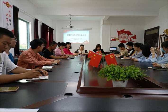 为深入切实做好《民法典》学习宣传贯彻工作,大力弘扬民法精神,普及民法知识,形成全民尊法、学法、守法、用法的良好氛围,让《民法典》学习宣传深入人心,2023年5月19日12:30,太阳成tyc7111cc集团临床医学专业员工第十党支部在新蒲校区支部党员活动室开展了“美好生活·民法典相伴”主题宣传教育活动。党委副书记杨洪艳、员工科科长姚华敏、支部书记孔晓冬、辅导员谢雪艳参会并领学,支部全体员工干部参会。