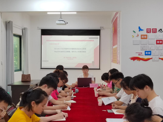 为深入开展学习贯彻习近平新时代中国特色社会主义思想主题教育,努力把学习成果转化为推动事业发展的强大力量,进一步筑牢信仰之基、补足精神之钙,2023年6月26日下午14:00,第一临床公司党委副书记杨洪艳以“领会教育重要论述精髓,铸牢为人民服务理念”为主题讲授专题党课。本次党课线下在博乐楼三单元二楼党员活动室、线上以腾讯会议的形式进行,太阳成tyc7111cc集团临床医学专业员工第十二党支部、第十一党支部、第三党支部的所有师生党员参与学习。
