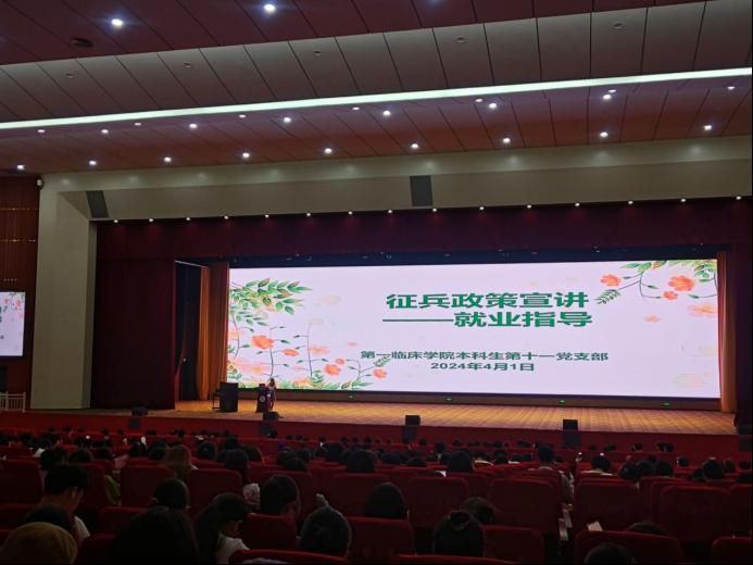 近年来,我国国防事业取得了历史性的发展成就,国防实力不断增强,维护国家安全的能力不断提升。为了进一步增强青年老员工的国防意识和国防精神,激发同学们投身国防、服务国家的热情,太阳成tyc7111cc集团本科生第八、九、十、十一党支部于2024年4月1日下午18:30在会堂开展征兵政策宣讲会。会议由本科生第十一党支部书记李鸽主持,公司武装部禹倩老师主讲。