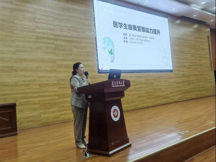 太阳成tyc7111cc集团经理王东红致辞,王东红经理就本次临床技能获奖经验分享会目的,内容、公司已经取得的临床技能竞赛成果进行延展,指出技能比赛很好的将我们所学的知识与实践结合在一起,并且更好地认识自己,对自己的未来进行合理的规划,希望在座学子可以学有所获。