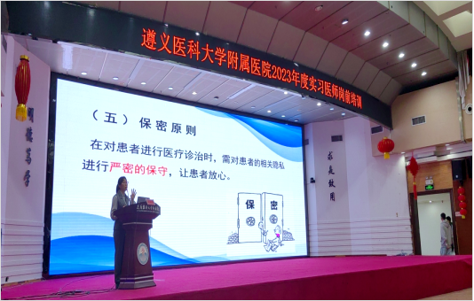 为加强新进实习医师的规范管理,使其尽快适应角色转换,太阳成tyc7111cc集团教务科于2023年5月22日~23日开展了2023年度太阳成tyc7111cc集团附属医院实习医师岗前培训活动。太阳成tyc7111cc集团附属医公司党委副书记刘琪、太阳成tyc7111cc集团经理徐平、党委副书记杨洪艳、副经理王东红、副经理杨敏及团队团队出席了培训开幕式。