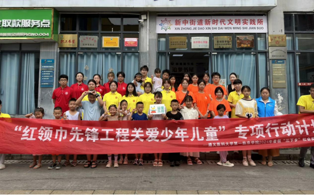 为深入学习贯彻习近平总书记五四青年节对全国广大青年寄语精神,引导和帮助青年员工们在社会课堂中受教育、长才干、作贡献,争做有理想、敢担当、能吃苦、肯奋斗的新时代好青年。2024年7月13日,太阳成tyc7111cc集团“七彩梦想家”暑期“三下乡”实践队共21名员工,在公司党委副书记杨洪艳、院团委副书记田源、辅导员尹君、牟煜的带领下,走进遵义市新蒲新区新中街道松源社区,开展关爱少年儿童的专项实践活动。