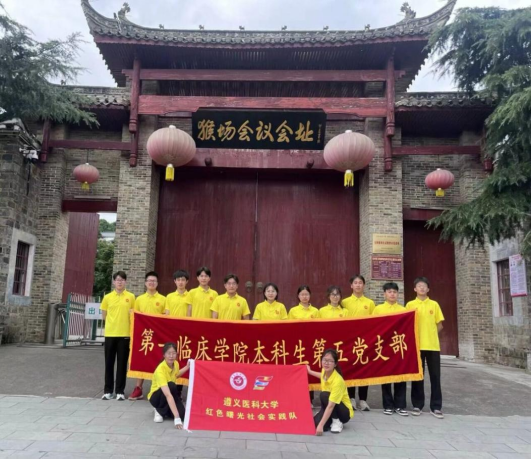 7月12日上午10时实践队队员抵达了遵义会议会址。遵义会议结束了王明“左”倾冒险主义在中共中央的统治,确立了以毛泽东为代表的新的中央的正确领导。这次会议是中国共产党第一次独立自主地运用马克思列宁主义基本原理解决自己的路线、方针和政策的会议。它在极端危险的时刻,挽救了党和红军,是中国共产党历史上一个生死攸关的转折点,标志着中国共产党从幼年达到成熟。在参观的途中,实践队聆听历史的回声,明晰了遵义会议的背景历史,感受红军在生死攸关之际的英明决策,学习体悟红色精神,讲述红色故事,明确中国共产党领导是历史的必然选择,为红色血脉注入青春力量。