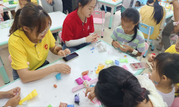 开展教育关爱,陪伴儿童成长。松源社区作为易地扶贫搬迁安置点,留守儿童较多,实践队连续2天,在社区新时代文明实践所为社区儿童开展了教育关爱活动。通过前期调研与准备,根据儿童实际需求,实践队员精心准备,科学制定课程,先后开展了作业辅导、手工制作、文明礼仪、安全教育、医学小课堂等内容的活动。教育关爱活动丰富了社区儿童的假期生活,让小朋友切实感受到了陪伴的温暖。