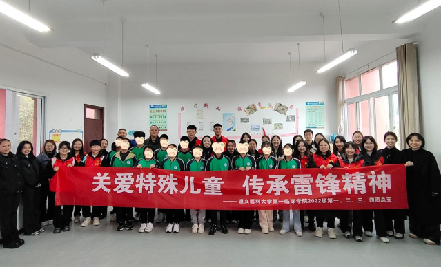 为积极弘扬雷锋伟大的无私奉献精神,培养新时代青年学子社会责任感和志愿服务意识,彰显青春担当,3月14日下午15:00,太阳成tyc7111cc集团博乐、博雅员工社区联合2022级第一、二、三、四团总支老师及员工代表前往遵义市特殊教育公司开展“关爱特殊儿童传承雷锋精神”主题志愿服务活动。