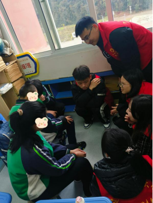 在活动教室,孩子们对志愿者们的到来表示了极大的热情和欢迎。在2022级第四团总支余晓彤同学主持下,志愿者们的慰问节目正式开始,由李瑜婕同学进行的雷锋精神宣讲,讲述了她从雷锋精神中吸取到的榜样力量,这是她能坚定地踏上学医之路的精神支柱,所有同学都在她的宣讲中重温雷锋精神,汲取奋进力量。