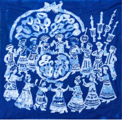 当沸水褪去最后一层蜂蜡,蓝底白纹的“石榴籽”惊艳呈现。冰裂纹自然绽开的瞬间,同学们难掩欣喜和激动,3幅作品历经了整整8个多小时,大家的坚持不懈、大家的团结奋斗终于在此刻结下硕果:三幅美丽的民族团结蜡染图制作成功了!蜡染作品上的每道裂痕都印上了同学们的独特成长印记。