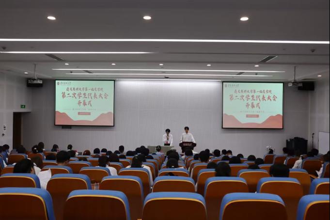 开幕式上,主持人杨远辉介绍出席本次会议的领导及来宾。在庄重的中华人民共和国国歌的歌声中,大会拉开帷幕。工作人员宣读公司团委关于同意召开代表大会的批复。第一临床公司党委委员、副经理杨敏为此次会议致辞,同时对员工会成员提出两点希望:要坚守服务初心,做同学信赖的“贴心人”;要锤炼品格,做有理想、敢担当、能吃苦、肯奋斗的“追光者”。校员工会主席团廖子聪向本次大会致贺词。随后,吴冰同学在本次会议中作员工会工作报告,并对员工会未来的工作做出展望。