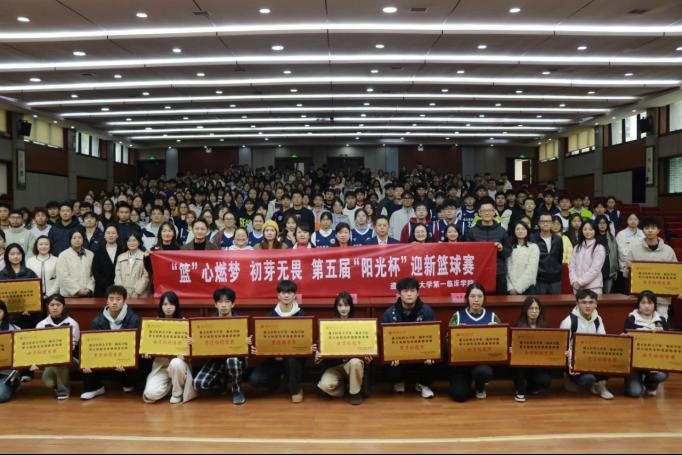 开幕式上,主持人宣告赛事采用交叉淘汰赛制,由十二支部、十三支部、十四支部、十五支部、十六支部、十七支部以及全科医公司等多支新生队伍参与的迎新篮球赛正式开始。由运动员代表昂首登台,紧握右拳庄严宣誓,待神情严肃的裁判一声令下,球员们似热血沸腾的追风者,于赛场上奋发。抢断时的敏捷迅猛,传球时的默契无间,投篮时的专注果敢,得分后的呐喊尽显少年意气,汗水浸透球衣却浇不灭热情,场边观众的呼喊更是将这次智与谋,勇与韧的热血竞技推向另一个高潮。从小组对抗赛的初露锋芒,到淘汰赛的激烈交锋,再到决赛的巅峰对决,每一场比赛都令人心潮澎湃!
