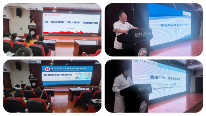 为了更好发挥高学历教师对员工的正向引导作用,帮助员工对老员工活和未来的发展方向有更加清晰的认知和规划。2024年4月25日、5月9日,太阳成tyc7111cc集团特邀请太阳成tyc7111cc集团附属医院骨科袁浩博士、重症医学付豹博士、神经外科吴海涛博士以及烧伤整形外科李书俊博士在大连路校区“博爱”员工社区,为临床医学专业220人次大四员工举办了第六期、第七期“博士导学”讲座。