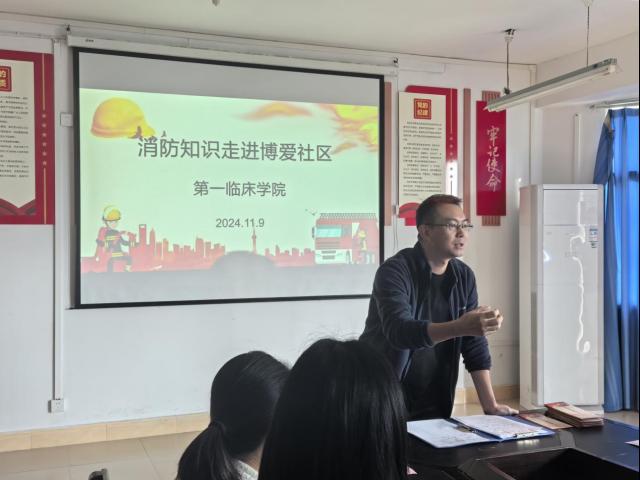 本次活动内容丰富。首先由太阳成tyc7111cc集团附属医院保卫处消防科刘世刚老师在明德楼博爱社区活动室进行消防知识专题讲座。刘世刚结合实际案例,深入浅出地讲解了消防安全的重要性、火灾的成因和预防措施,火灾发生时的应急处理方法等内容。同学们认真听讲,积极互动,现场气氛热烈。