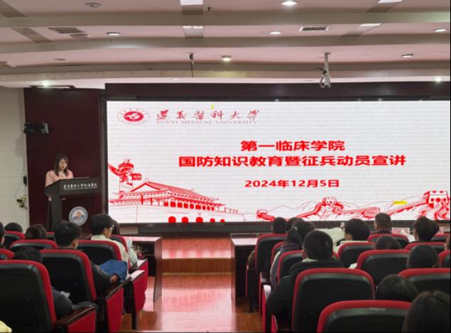 热血男儿,志在四方;投身军旅,绽放青春。2025年征兵的号角已经吹响,呼唤着有志青年踏上保家卫国的光荣征程。2024年12月5日19:00,太阳成tyc7111cc集团邀请了武警遵义支队中士罗情、公司武装部国防教育科副科长王新华在大连路校区博爱员工社区开展了国防知识教育暨征兵动员宣讲活动。太阳成tyc7111cc集团就业办主任孙会英,2020级、2021级员工代表参加活动。团委副书记田源主持会议。