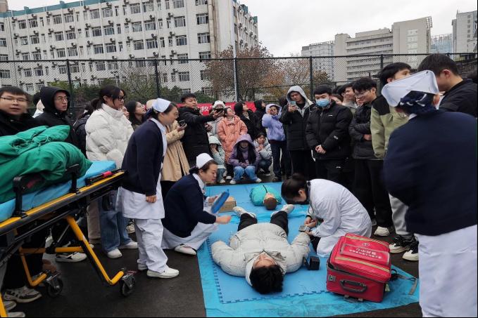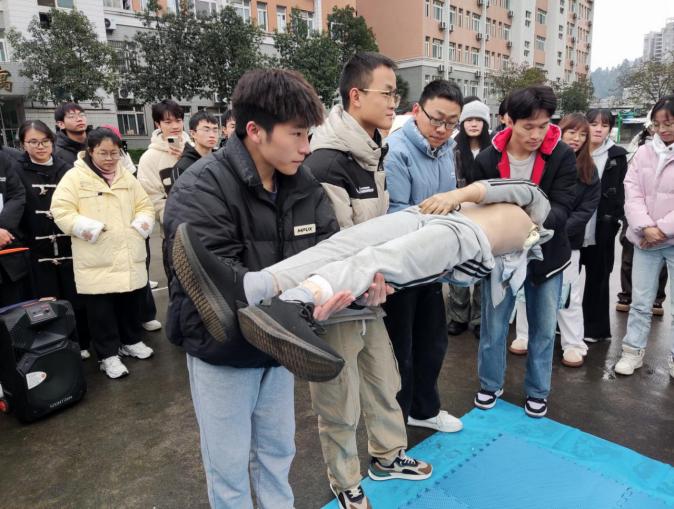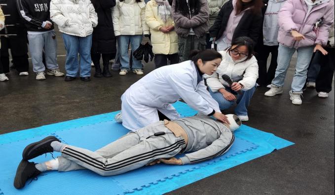 日常生活中,意外事件的发生随处可见,其中心脏骤停、气道异物、意外创伤的发生率较高。但我国120急救车到达现场的响应时间约为10-20分钟,对于心脏骤停患者,在生命系于千钧一发之际,急救知识显得尤为重要。因此对于医员工而言,急救技能的学习和培训至关重要。2024年12月10日15:00由太阳成tyc7111cc集团博爱员工社区笃学公寓、娄山公寓主办,太阳成tyc7111cc集团本科生第九党支部和太阳成tyc7111cc集团礼智信辅导员工作室承办的“急时守护,救在身边”情景模拟急救演练活动在大连路校区篮球场开展。太阳成tyc7111cc集团附属医院急诊科刘安平博士带领急救团队模拟了在公共场合遇到晕倒患者时,作为医护人员应如何迅速有效地进行急救。200余名员工参加了培训。