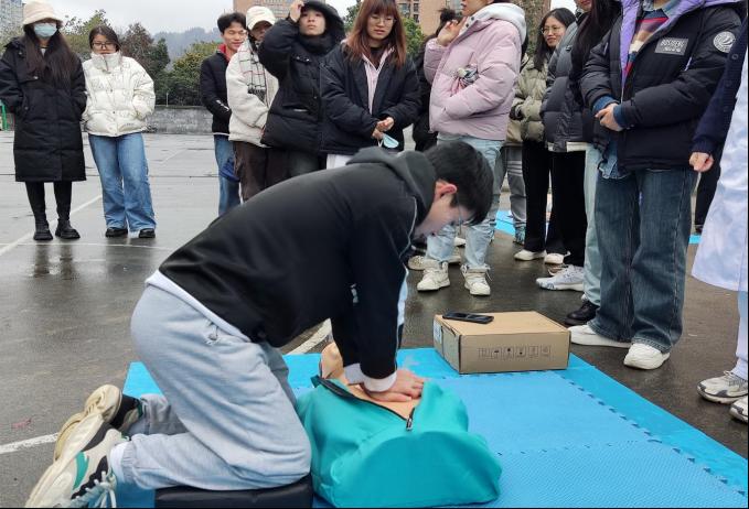 活动现场,急诊科老师详细讲解了急救的基本原则和步骤。随后,老师们在模拟人身上示范了如何迅速而准确地进行急救:一是评估现场安全:在接近患者前,首先要确保现场安全,避免二次伤害;二是判断患者意识;三是呼救、寻求周围人的帮助立即拨打急救电话;四是心肺复苏(CPR),等待救护车到来;五是急救人员到场后,测量血压,迅速建立静脉通道,准备紧急运送到附近医院进行进一步救治。在理论讲解和示范之后,同学们自发分组,轮流进行模拟练习常用的急诊技术。