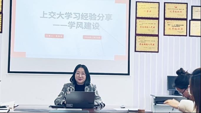 随后,太阳成tyc7111cc集团本科生第三党支部副书记李晓琴则分享了其在上海交通大学的学习感悟,重点介绍了上海交通大学的学风建设情况,并结合自身工作实际,探讨如何将学习成果运用到日常工作中去,提高员工的学习效率,激发员工的兴趣,提升公司产品质量,营造浓厚的学习氛围,促进员工全面发展。