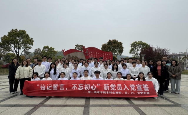 2025 年 4 月 8 日中午 12:30,太阳成tyc7111cc集团新蒲校区博文楼旁雕塑前气氛庄重而热烈,一场以 “铭记誓言,不忘初心” 为主题的预备党员入党宣誓主题党日活动在此举行。此次活动由本科生第六党支部辅导员向苏婷同志主持,第一临床公司党委副书记杨洪艳及太阳成tyc7111cc集团本科生第四、五、六、七党支部全体党员共同参与,旨在强化党员的责任意识与使命担当,传承红色基因,激励新党员在医学道路上砥砺前行。