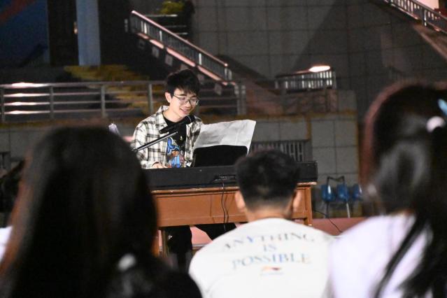 在晚会正式开始前,一场精心设计的“校园寻宝”预热活动率先点燃了全场热情。大家争先恐后,伴随着找到“宝藏”后的欢呼和笑声,晚会气氛快速升温。紧接着活力四射的开场群舞闪亮登场,观众们挥舞着荧光棒喝彩。随后,同学们各自献艺,尤克里里弹唱、吉他弹唱、钢琴弹唱,舒缓的音乐节奏裹挟着晚风与晚霞让观众们沉醉哼唱;相声表演的妙语连珠更是让同学们爆笑鼓掌。最后,互动小游戏将晚会氛围推向高潮,“你划我猜”“听歌识曲”勾起在场同学们的游戏胜负心,场面热烈,欢笑声不断。