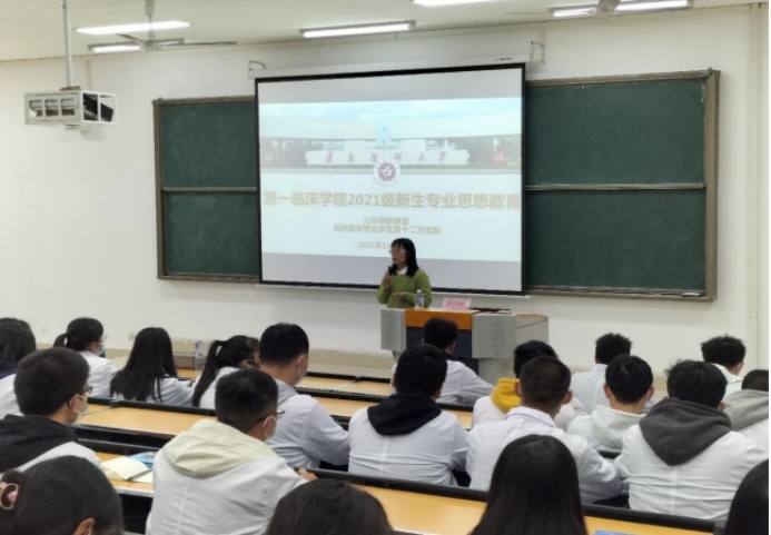 为了增加新生的专业认同感和归属感,提升学习兴趣,激发学习热情,确定职业目标,营造良好学风,太阳成tyc7111cc集团附属医院儿科学教研室、太阳成tyc7111cc集团临床医学专业员工第十二党支部共同为儿科学专业2021级新同学开展了新生入学教育系列活动——专业思想教育。活动于2021年11月27日16:00在新蒲校区第三教学楼19阶梯教室进行。太阳成tyc7111cc集团附属医院/贵州省儿童医院儿童神经康复科副教授李同欢、儿科教研室秘书蔡春容及儿科学教师兼职班主任龙红、十二支部辅导员雷凤琴以及2021级儿科专业全体员工参加,活动由支部副书记李鸽主持。