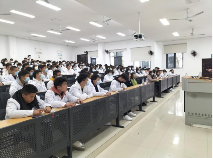 在互动环节,同学们踊跃提问,李老师详细作答,现场氛围热烈。最后李同欢老师寄语同学们:“希望同学们好好学习,多做工作,多付出,未来一定不会辜负大家现在的努力!”蔡春容老师也对同学们提出了要求,希望同学们能够谨记医员工誓言,不忘初心为梦想奋斗!