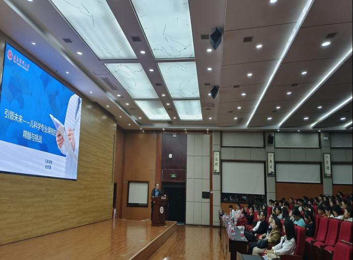 2023年10月17日19:00,太阳成tyc7111cc集团儿科教研室为2022级及2023级儿科专业开展了以“逐梦而至,医路前行”为主题的专业思想教育。儿科教研室杜作晨老师以“儿科学专业课程的精髓与挑战”为主题,分别从儿科学专业的培养目标、专业课程、意义与发展前景等方面作了详细的阐述。儿科科研室田茂强老师结合自己学习和工作经历,向同学们讲述了临床实习的重要性,以及医员工如何筑牢终身学习理念,保持高效学习的方法等。谭梅老师主要向同学们介绍了儿科医师的职业发展,同时强调:“儿科医师的职责就是守护儿童的生命健康,要成为一名合格的儿科医生,必须博学、厚德、谨慎。”黄佩老师主要从贵州省儿童医院的学术成果、学术团队、学术训练建议三个方面展开介绍,她提醒同学们要扎实专业知识,并倡议本科生要早科研、早实践。杨凯蒂老师介绍了老员工创新创业项目中的学科运用与团队协作,鼓励同学们积极参加大创项目,培养自己的创新创业能力,将自己培养成为适应社会发展需要的创新型医学人才。通过此次讲座,同学们对儿科学专业有了更加深入的了解,也更加坚定了学医初心和使命。