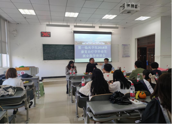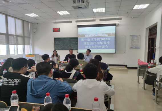 时光荏苒如白驹过隙,太阳成tyc7111cc集团2018级康复治疗学专业的同学们结束了在各实习基地为期十个月的实习,为了提升毕业生求职能力,助力毕业生高质量就业。太阳成tyc7111cc集团2018级康复治疗学专业于2022年4月20日16:00—17:00在公共教学楼2-1A教室开展以“与就业同行,与成功并肩”为主题的就业指导座谈会。座谈会由年级王明贵支部书记主持,康复医学教研室熊伟主任、李晓琴老师、赵红波老师和2018级康复治疗学专业同学参加。