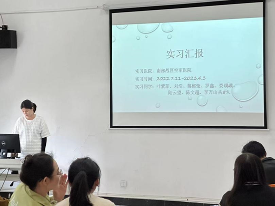 随后,各实习点组长详细地向老师们汇报了实习医院的团队、科室轮转、实际操作、住宿等具体情况,分享自己的实习感受与收获。