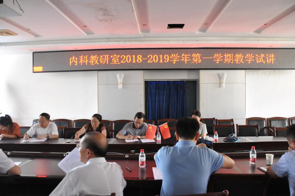 内科教研室于2018年8月21日下午3点,在遵义医公司行政楼5楼会议室开展2018-2019学年第一学期《内科学》试讲活动。共3名青年教师参加试讲,教研室主任欧阳瑶主任、谭天海主任、王红副主任、王正龙副主任参加指导,并邀请临床公司督导专家莅临指导,专家们提出了许多宝贵意见,让青年教师们受益匪浅。