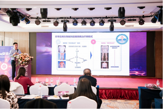 在学术交流会上,江苏省人民医院皮肤科骆丹教授讲授“皮肤免疫探索与实践2022盘点”,对免疫性皮肤病和目前临床治疗现状需求进行讲解,并结合自身临床诊疗经验,对“银屑病、荨麻疹、特应性皮炎”等常见免疫变态反应皮肤病在实际临床工作中如何选择治疗方案进行传授。陆军军医大学西南医院皮肤科尹锐教授作了关于“遵循指南规范:全面提升银屑病治疗结局”的精彩演讲,重庆医科大学附属第一医院皮肤科王萍教授带来“银屑病诊疗中心专病建设及长期规范用药病例分享”,遵医附院皮肤科张更建教授带来“例例可见——尽早起始全面获益临床病例分享”。重庆医科大学附属第一医院李惠教授、贵州省毕节市第二人民医院王宝仁教授、遵医附院晏文教授、杨莹教授,遵义市第一人民医院张金松教授分享了关于银屑病治疗的专家观点。陆军军医大学西南医院的尹锐教授、贵州省毕节市第一人民医院方杰教授、贵州省黔东南州人民医院杨丽教授,贵州省毕节市第二人民医院揭丽云教授分享关于银屑病生物制剂治疗的心得体会。最后,遵医附院皮肤性病学教研室副主任晏文作总结。