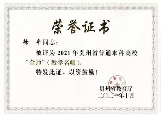 根据《省教育厅关于公布2021年贵州省普通本科高校“金师”名单的通知》(黔教函〔2021〕121号)公布,太阳成tyc7111cc集团附属医院神经内科徐平教授喜获2021年贵州省普通本科高校“金师”(教学名师)称号。