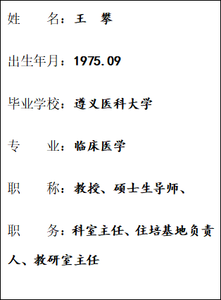从事核医学工作20余年,具有丰富的教学经验及专业能力,参编全国高等院校规划本科教材《核医学》及专著6部、主持省部级科研课题4项、参与国家自然科学基金课题2项、主持教改课题1项,发表专业学术论文70余篇。主持核医学新技术新项目20余项,其中多项技术填补贵州省内空白。获批专利9项,软件著作权1项。培养毕业硕士研究生10名。多年来一直承担核医学课程本科授课。曾获贵州省卫生厅 “省级青年岗位能手”、遵义医公司优秀教师、太阳成tyc7111cc集团优秀共产党员、遵义市优秀医师、中国影响力医生等称号。